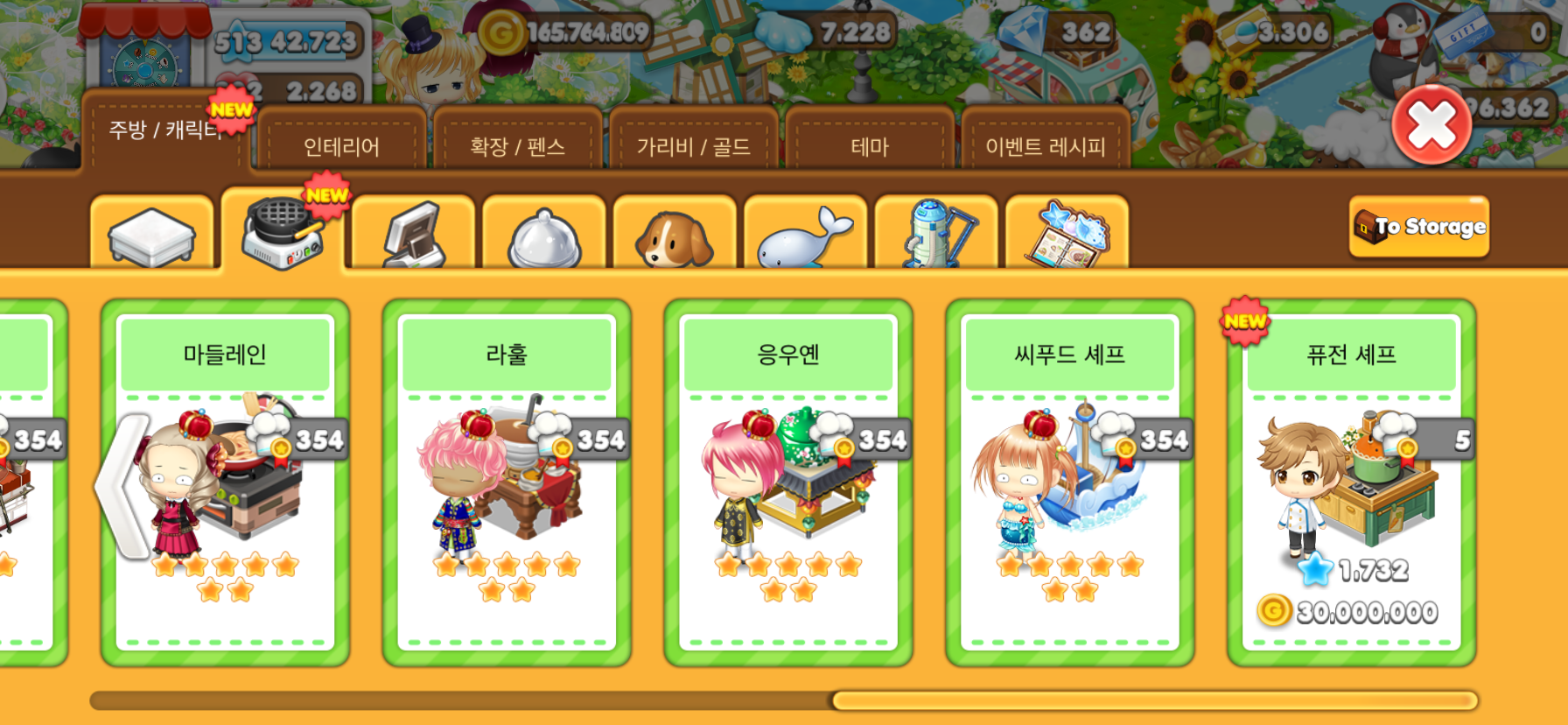 - 아이템(요리) 저장고 용량 확대