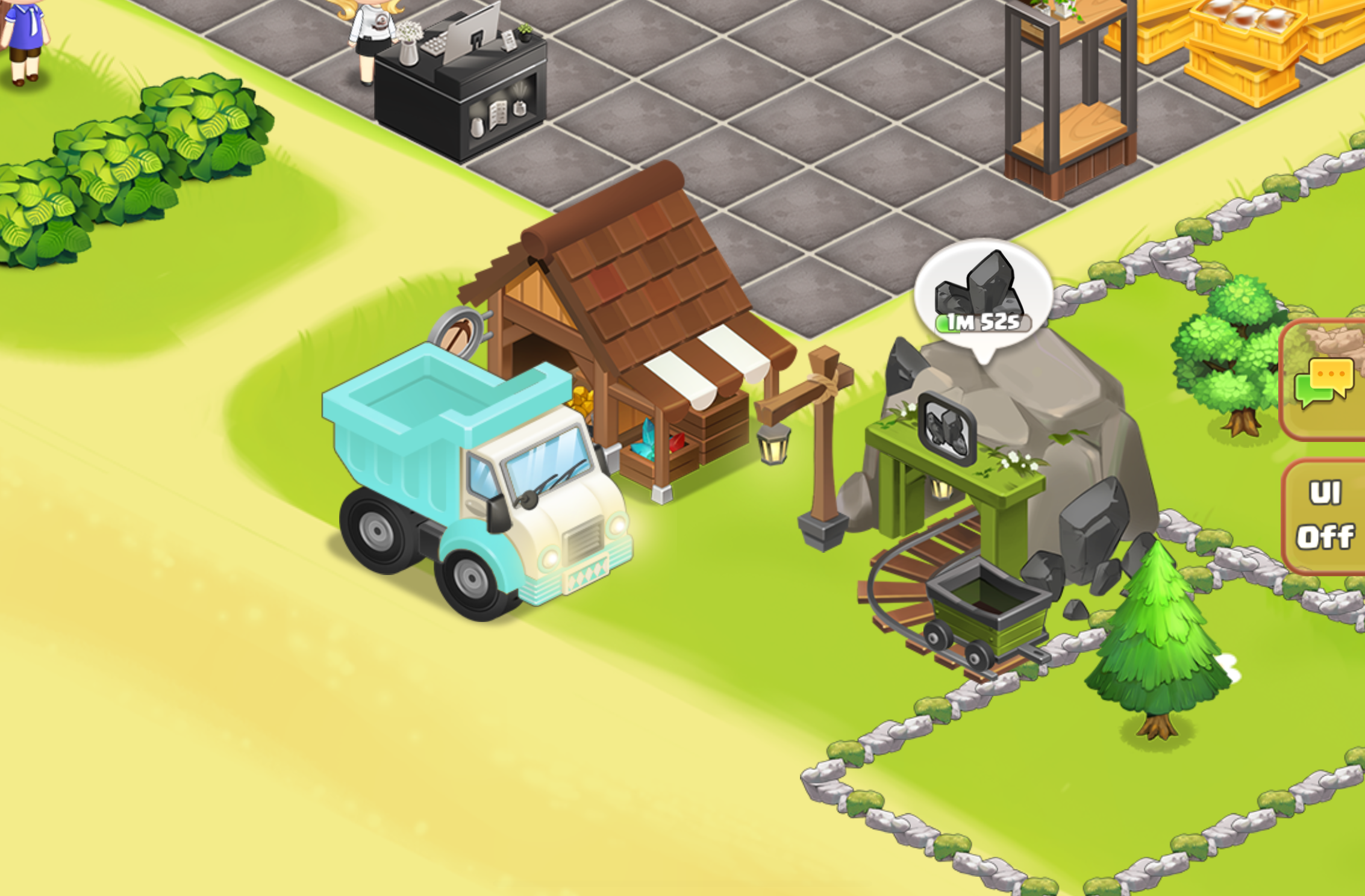 Go to Shop > Outdoor > Gold Cart icon to install the Mineral Storage and Mine.