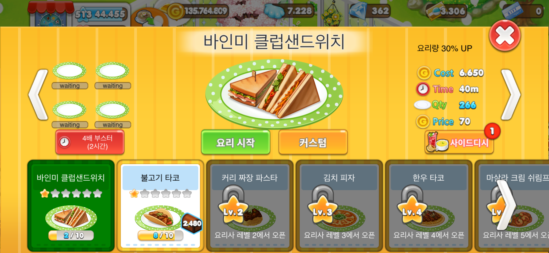- 아이템(요리) 저장고 용량 확대